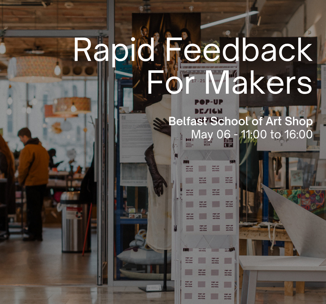 We are delighted to be partnering with Belfast Design Week co-founder Blick Shared Studios, Belfast School of Art Shop, Maven, KMN Creative Consulting and Story Box this year for Belfast Design Week to give 8 emerging makers and designers the opportunity to meet with and get feedback from independent design and retail professionals. Participants will each have a 20 minute one-on-one session with our panel getting rapid feedback, constructive critique and guidance on products or works in progress.
