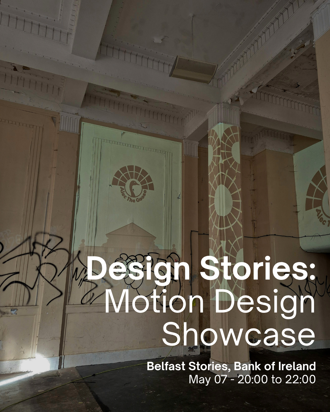 This event will include a central showcase of a series of printed posters from the Design Stories project alongside a motion design piece which will be projected in the Belfast Stories Building. A heritage venue that will be home to the upcoming Belfast Stories museum in the coming years.